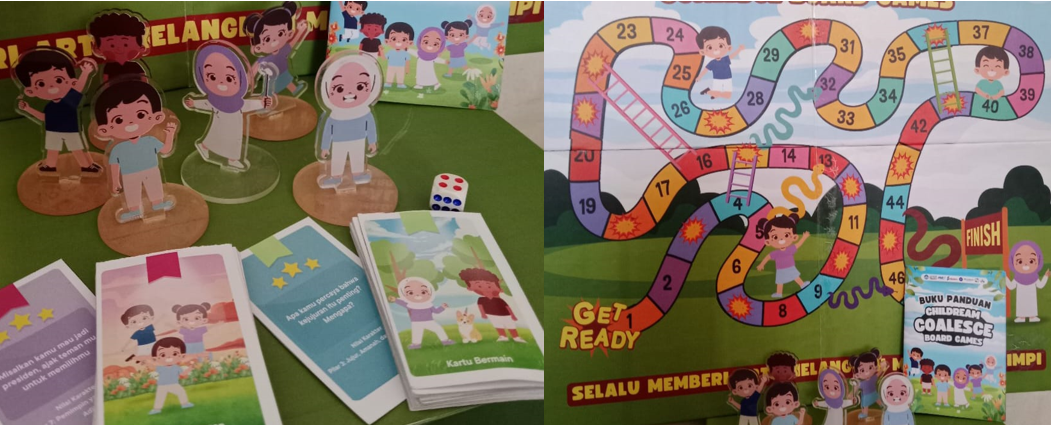 Childream Coalesce Board Games merupakan sebuah media pembelajaran yang terinspirasi dari permainan ular tangga. Namun, permainan ini dikembangkan dengan komponen tambahan yang berfokus pada pengembangan karakter anak. Komponen tambahan ini berupa kartu pertanyaan dan tantangan yang memberikan kesempatan bagi anak-anak untuk terlibat aktif dalam proses pembelajaran. Hal ini tidak hanya membuat belajar menjadi menyenangkan tetapi juga membantu anak memahami dan menerapkan nilai-nilai karakter dalam kehidupan sehari-hari. Dengan cara ini, motivasi belajar anak akan meningkat, karena mereka melihat relevansi dari pembelajaran terhadap pengalaman pribadi mereka.