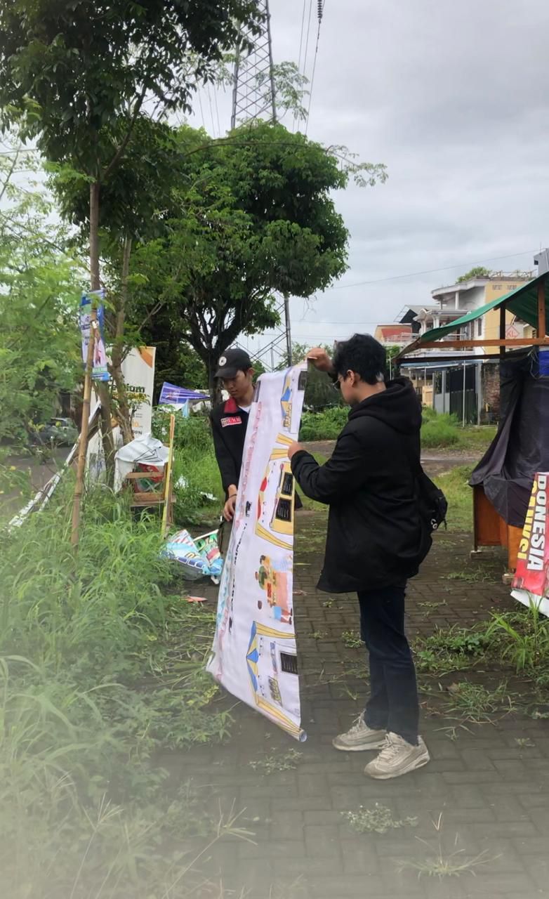 Melakukan pergantian banner lama dan banner baru oleh mahasiswa universitas muhammadiyah malang.