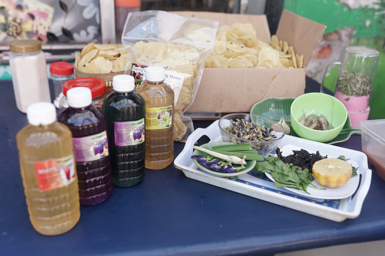 “Kalau emping belinjo kita sesuai dengan pemesanan saja, kalau minuman kemasan kita jualnya per tiap hari, jadi kita kirim kemana-mana, kalau habis kita bikin lagi. Kalau pemesanan itu tergantung perorangan, ada yang pesan 3 kg, 5 kg. Tapi kalau untuk lebaran, kami menjualnya hampir 50 kg atau 70 kg, itu untuk wilayah Surabaya. Tapi kalau untuk yang lainnya belum bisa dihitung… Kalau minuman, kita bikinnya juga ga banyak. Yang kita kirim kan ga begitu jauh ya, hanya terdekat aja,” ujar Ibu Supriatin, salah satu pelaku UMKM yang bergerak di bidang kuliner (emping belinjo dan minuman kesehatan).