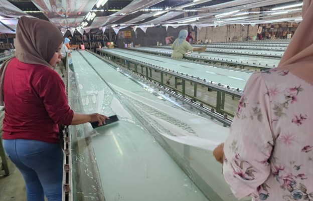 Shalom Dunia (PTSD) merupakan salah satu perusahaan yang bergerak dalam bidang percetakan dan sablon dengan bahan dasar kimia seperti cat, lem, cairan primer dan lain sebagainya yang bebahan dasar solvent. cat dan bahan dasar cat. Produk yang dikeluarkan adalah transfer paper logo, insole dan komponen sepatu lainnya. Bahan baku yang diperlukan dari produk-produk yang dibuat oleh PTSD sangat beragam dari satu produk dan produk lainnya. Dalam memperoleh keberhasilan perusahaan, salah satu aspek yang berperan sangat penting adalah sumber daya manusia. Oleh karena itu, perusahaan perlu memberikan perhatian kepada karyawannya terutama dalam jaminan karyawan memperoleh keamanan ketika bekerja dan diatur pada Kesehatan dan Keselamatan Kerja (K3). Kecelakaan kerja merupakan sebuah kondisi atau keadaan yang tidak terencana, tidak dapat dikendalikan dan tidak diinginkan saat melakukan pekerjaan. Hal ini dapat terjadi secara langsung ataupun tidak yang ditimbulkan dari tindakan yang aman ataupun tidak yang kemudian menyebabkan pekerjaan terhenti.